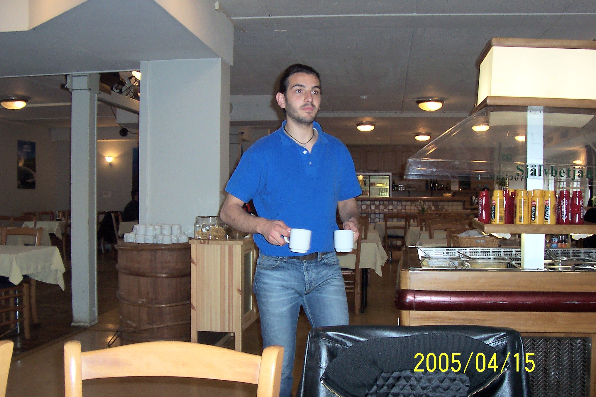 Stavros hämtar kaffe